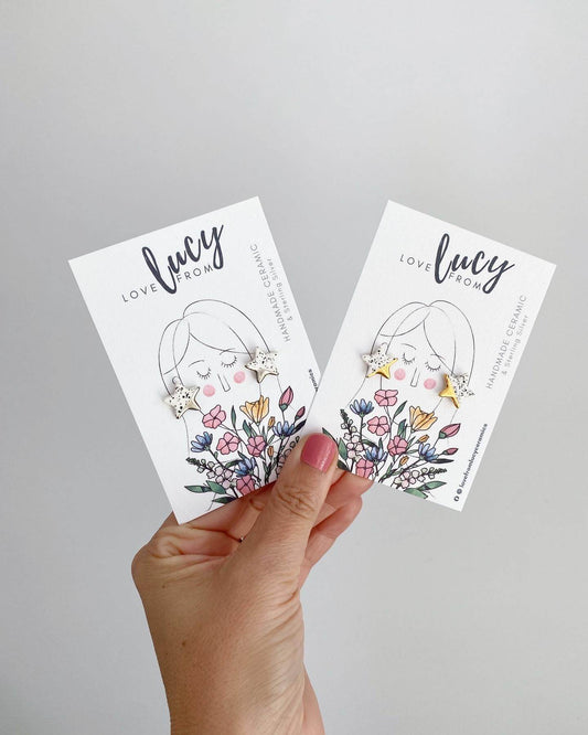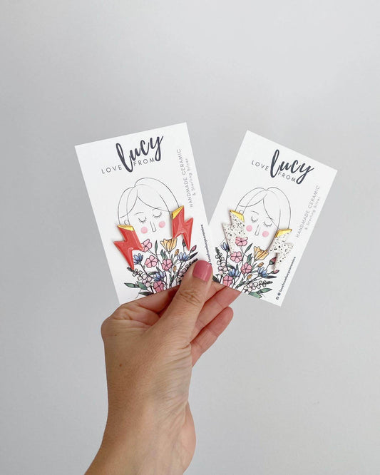 Welcome! I’m Lucy - founder/chief wearer of and maker at Love from Lucy, my now full time small business. Having sold my earrings in shops and at markets for a few years alongside my Freelance job, I’m so glad to have finally made this space for you to come and browse, buy, or window shop at your leisure from wherever you may be!
