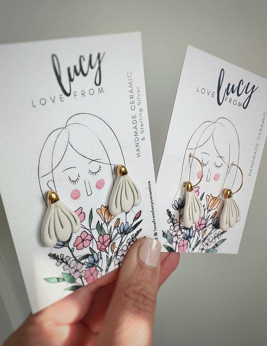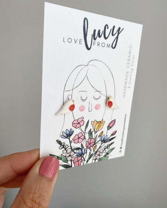 Welcome! I’m Lucy - founder/chief wearer of and maker at Love from Lucy, my now full time small business. Having sold my earrings in shops and at markets for a few years alongside my Freelance job, I’m so glad to have finally made this space for you to come and browse, buy, or window shop at your leisure from wherever you may be!