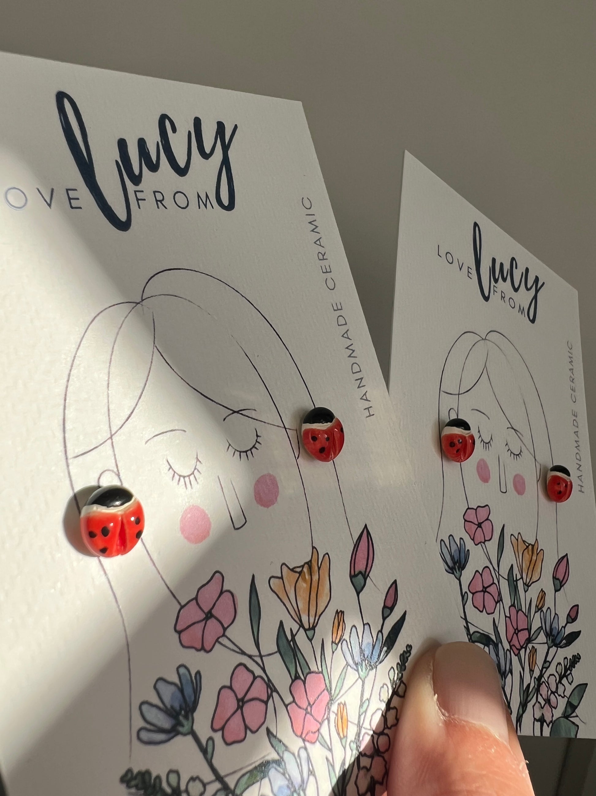 New in 2025, made during the summer of ladybirds, a tiny ladybird stud on a stainless steel earring post. Perfect for all ages!